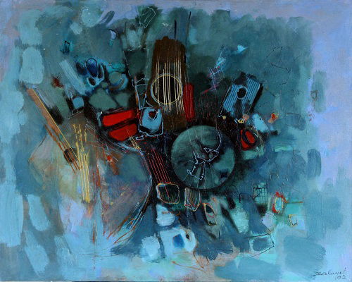 ציורים של כלי נגינה בסגנון אבסטרקט