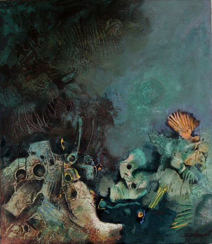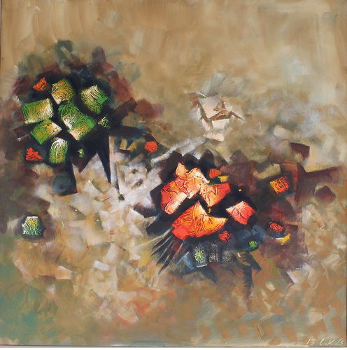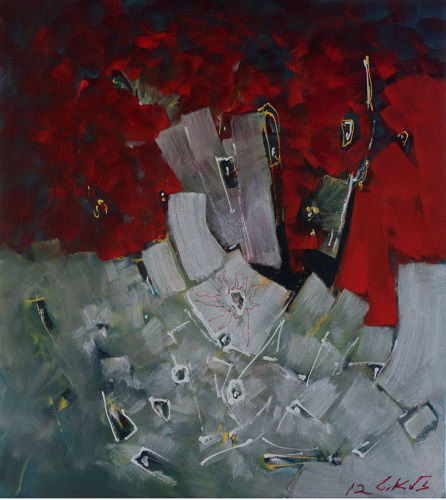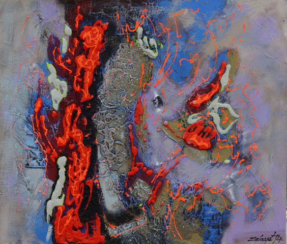 ציורים בצבעי אקריליק על בד קנבס עם רלייפים בטכניקה מעורבת