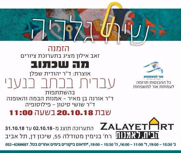 התערוכה הנוכחית מדברת בשפה מודרניסטית נוסטלגית מתוך עולם המושגים הישראלי, במבט דואג, ועם זאת בהומור שנון. הצופה מוזמן להתבונן ולעיין בכתבי החידה המזומנים לו בציורים אלה ולנסות לפענחם.